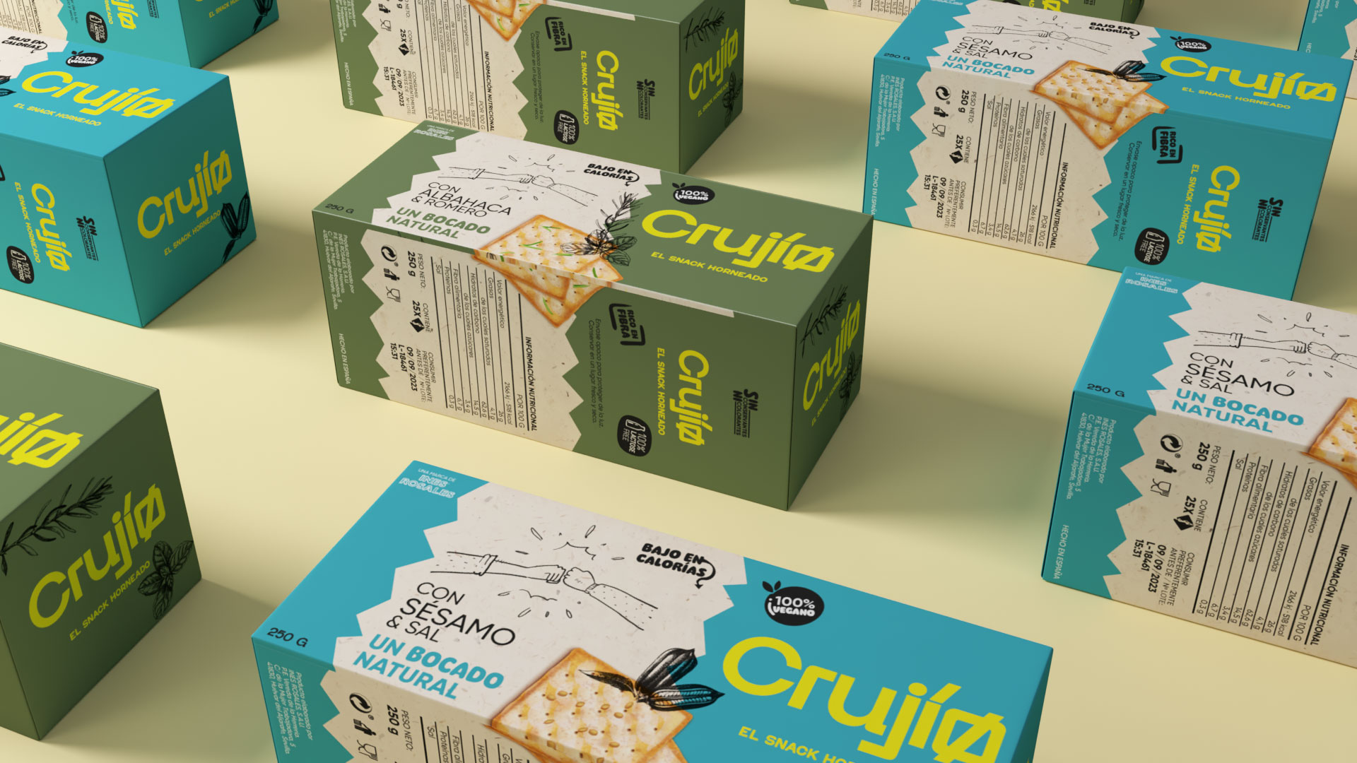 Para rematar, lo acompañamos de un packaging desenfadado y práctico que recogiese todos estos valores. Unos crackers se han ganado un pellizquito de nuestro corazón y nuestro estómago.