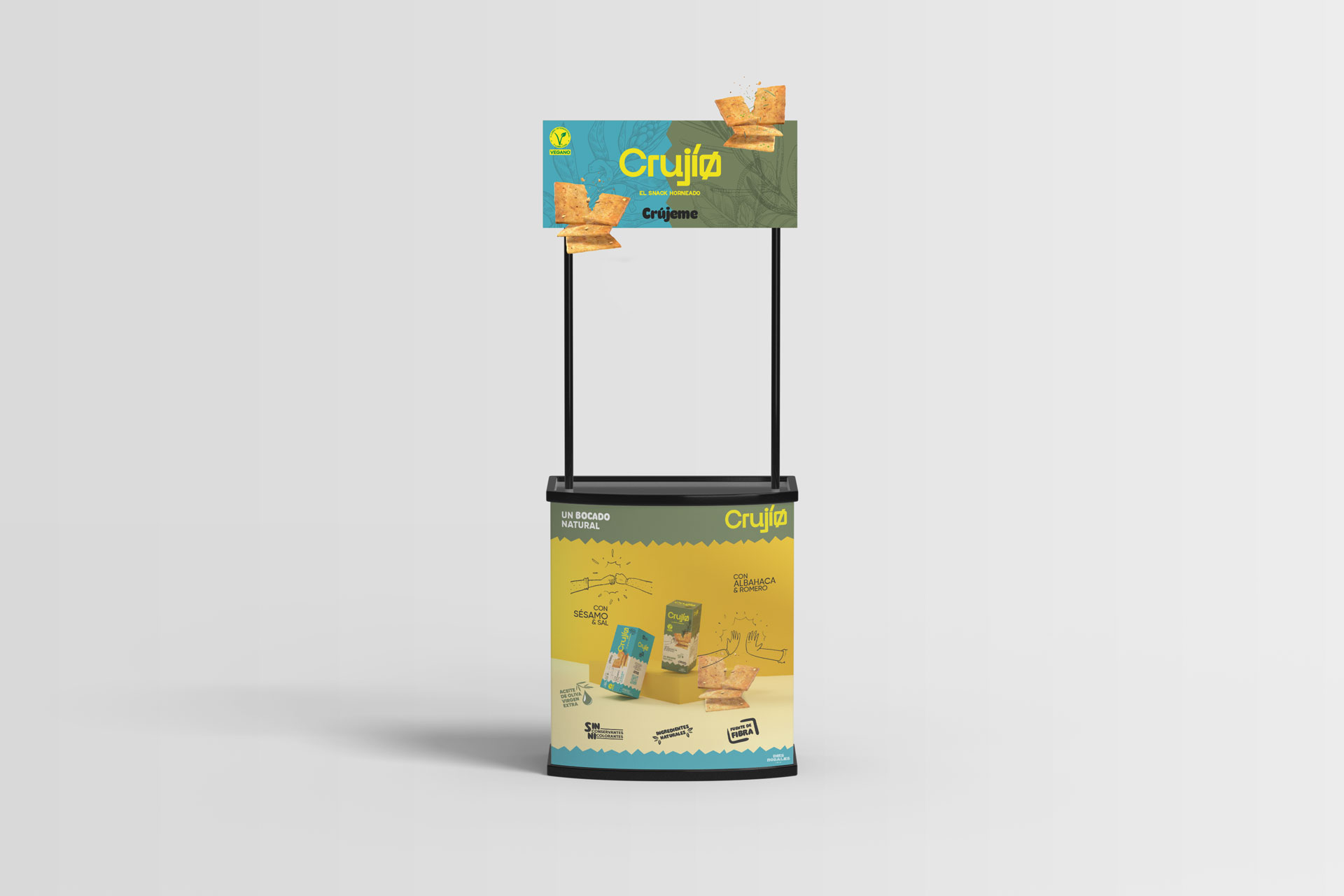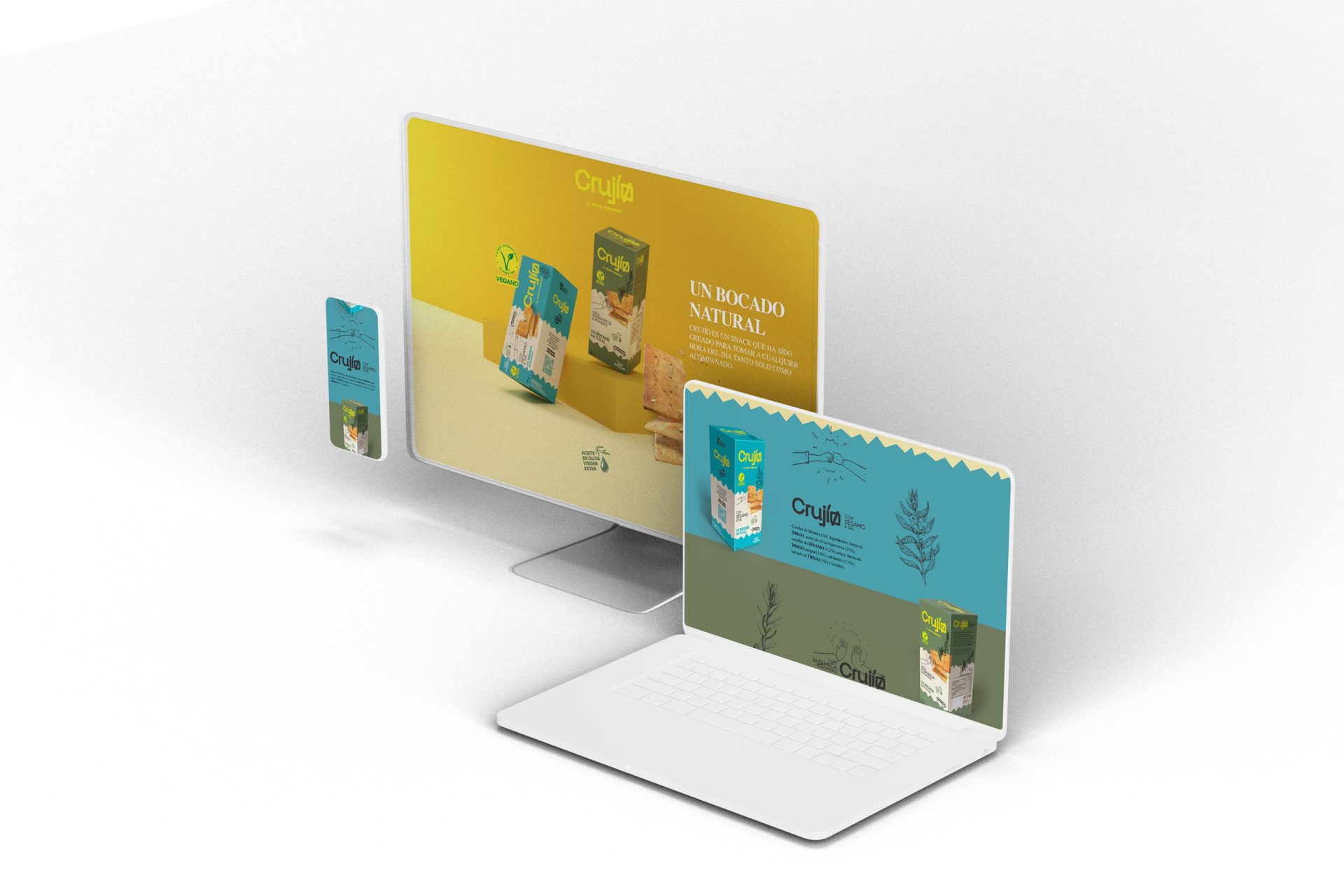 Propusimos un naming natural y joven. Realizamos un juego a lo español, incluso a lo andaluz, pero de manera sutil. Se dota de emoción y sentimiento, al hecho de saborear los crackers. Esos crackers que crujen y son perfectos como snack o aperitivo para matar el gusanillo, o dicho de otro modo, al momento en que nos suenan o crujen las tripas.